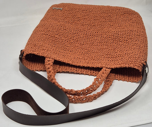 Papiergarn-Tasche,Häkeltasche mit Innentasche und Kunstlederträger – lachsbraun | handmade by dudest