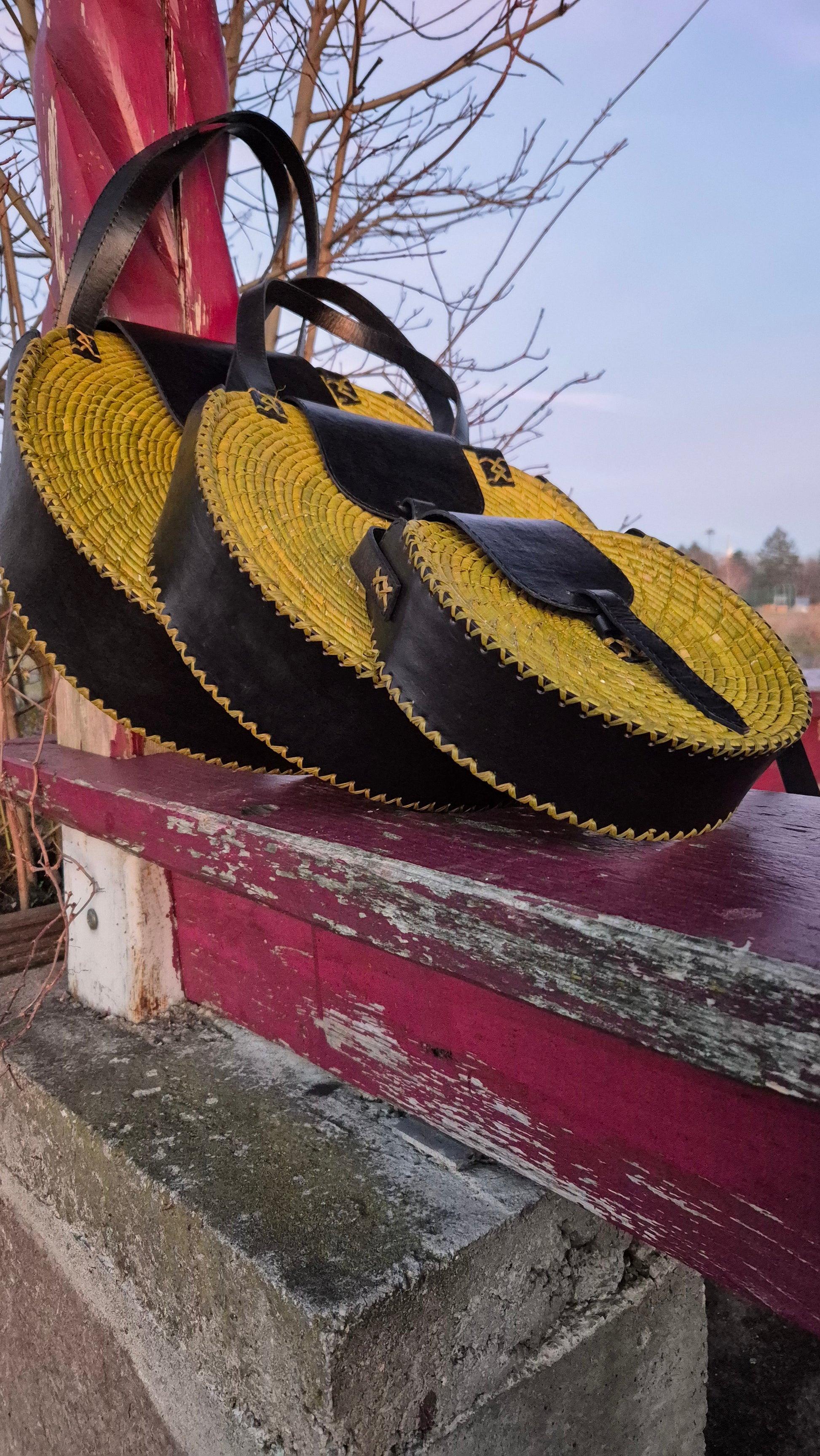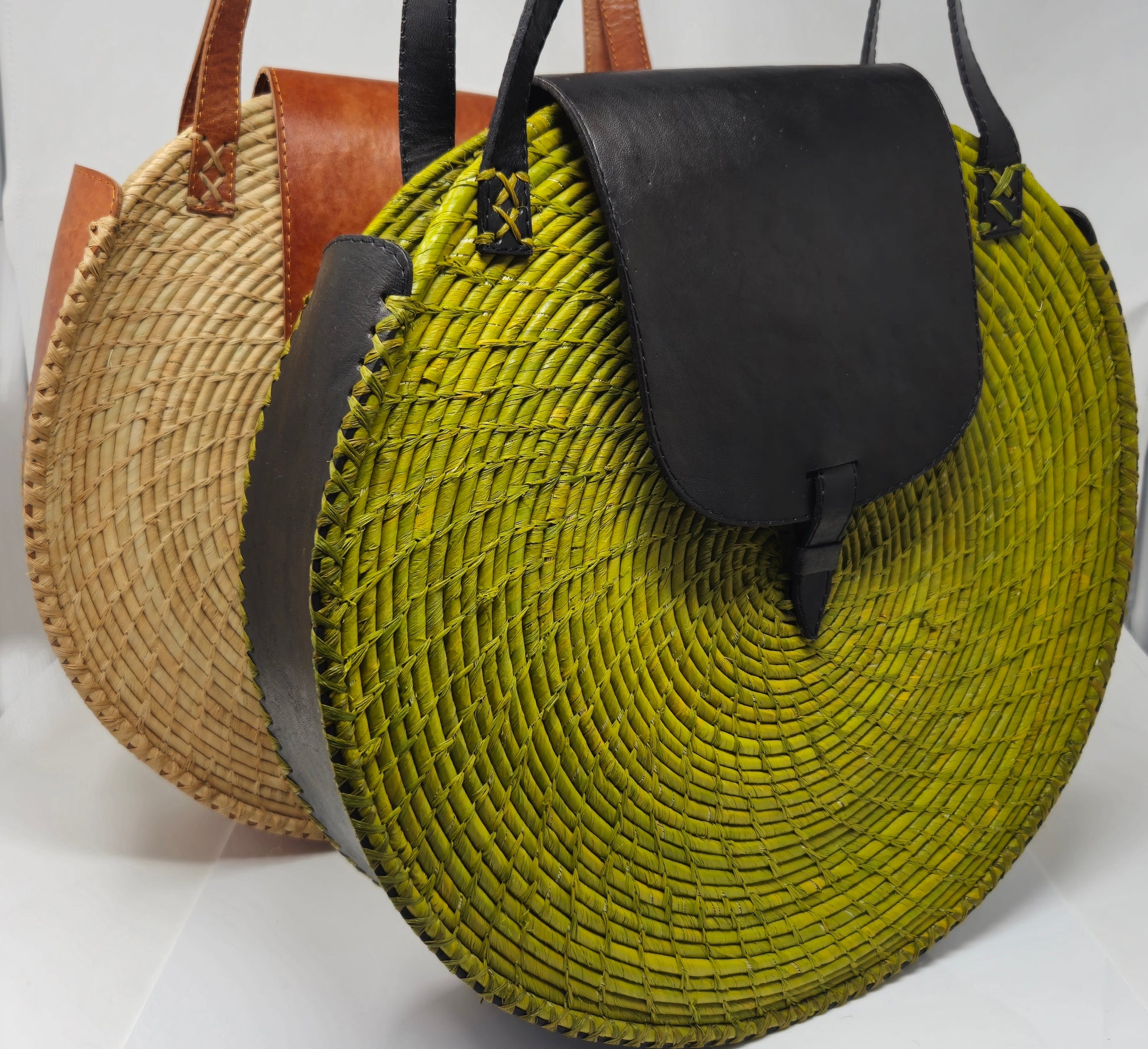 Runde Raffia & Leder Tasche – Handgefertigt, Einzigartig & Natürlich