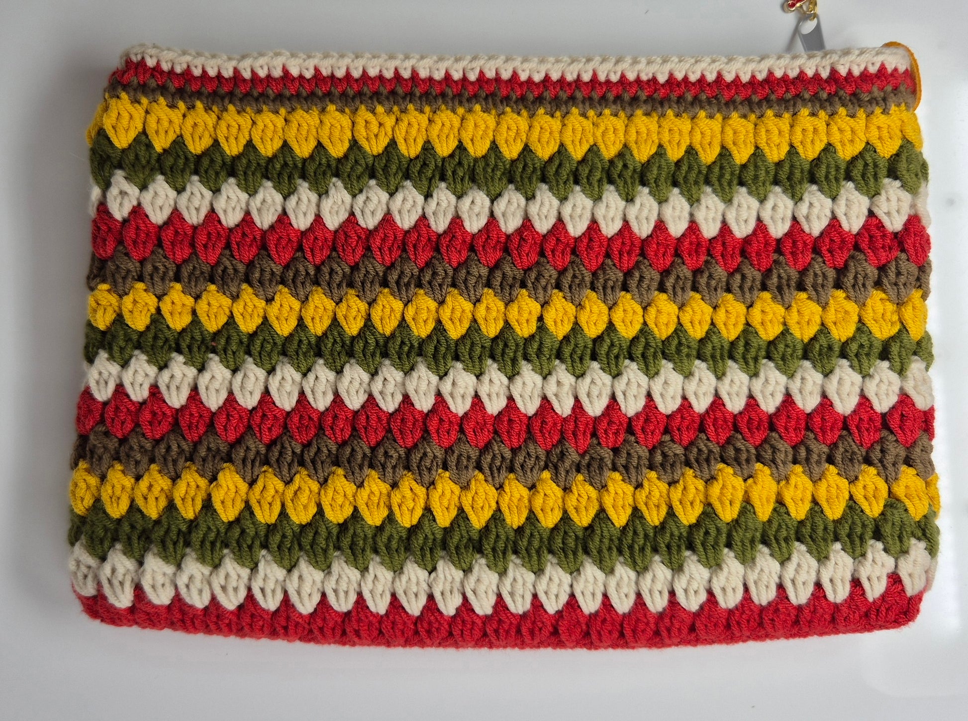 Diese hochwertige Kosmetiktasche wird liebevoll von Hand gehäkelt und ist ein echter Blickfang in jeder Handtasche. Durch die stabile Struktur und das besondere Puff-Maschen-Design bietet sie nicht nur Stil, sondern auch sicheren Schutz für deine Lieblingsprodukte.